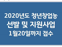 2020년도 청년창업농(청년창업형 후계농) 선발 및 지원사업 / 1월20일까지 접수 (0) | 2019.12.31 |